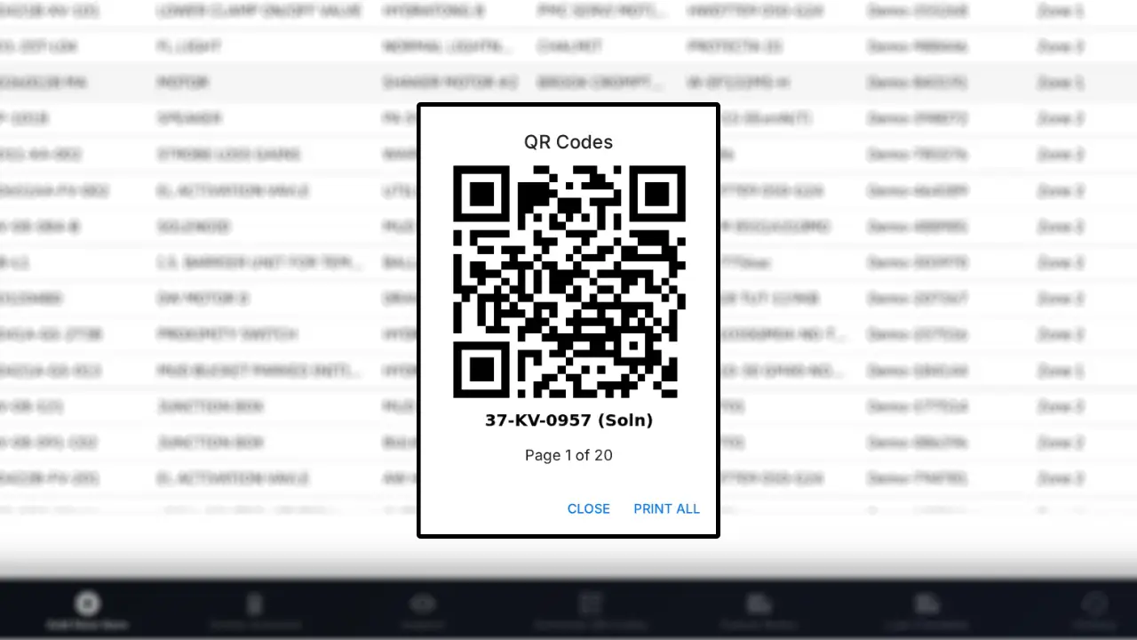 Bulk print QR codes for as many items as you want, each QR code will be generated with equipment tag below for identification.