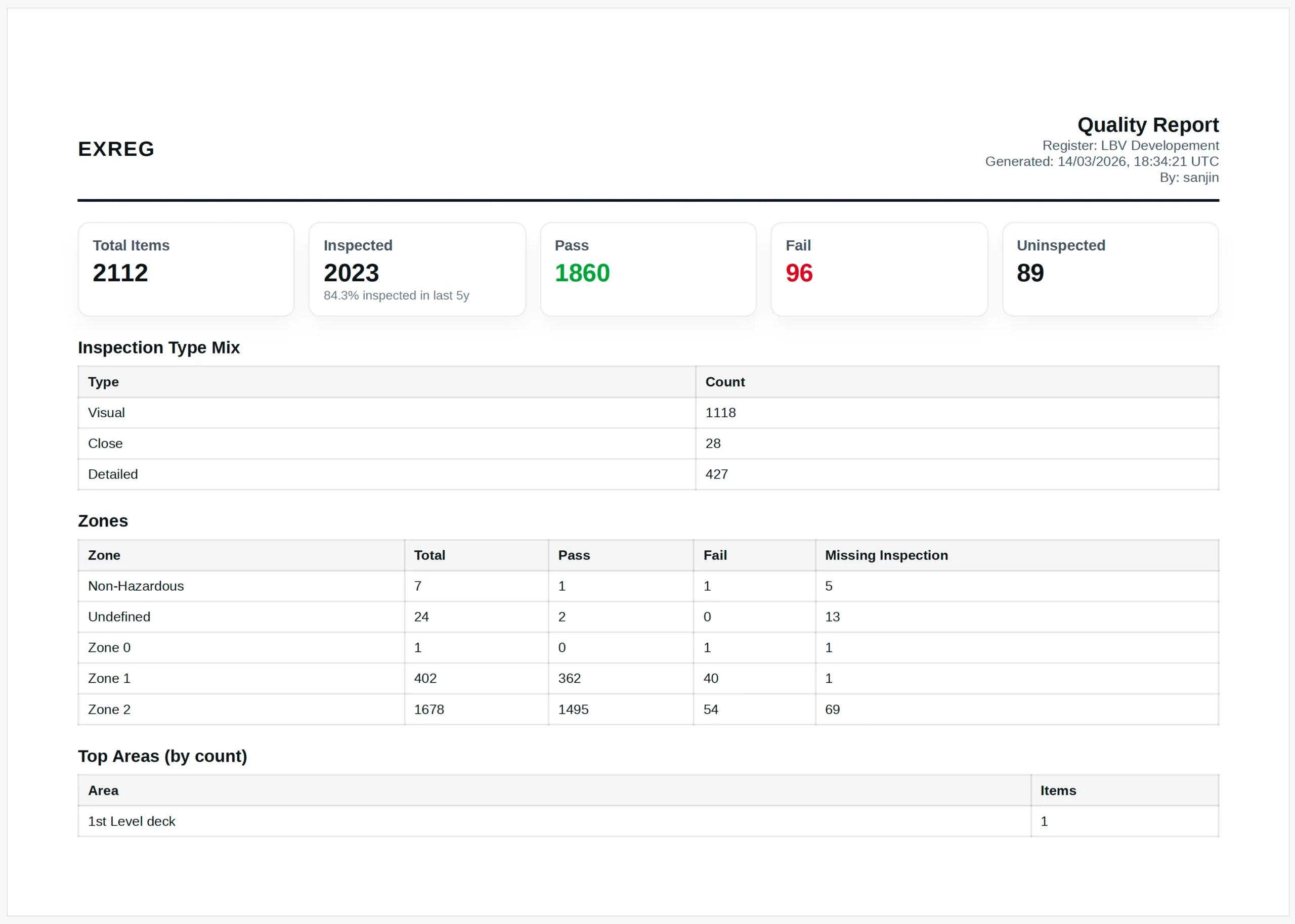 Generate structured, professional inspection reports directly from EXREG. Export inspection results, equipment details, and findings into clear PDF documents that can be shared with your clients.